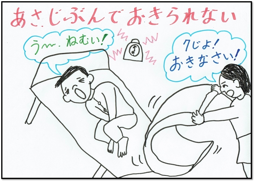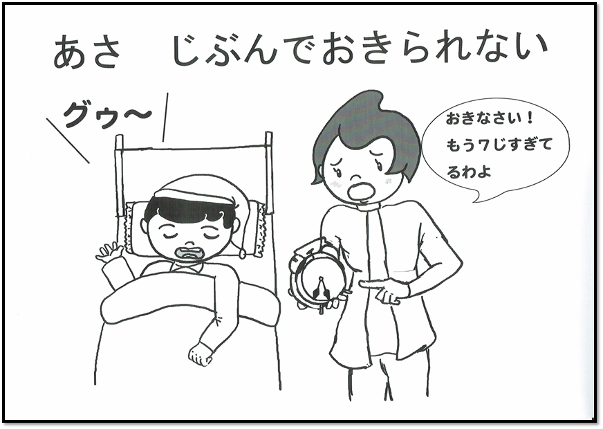 あれれ?こっちがかっこいいの?おかあさんにおこされてるよ。じぶんでおきるのがかっこいいな。ひとつまえにもどる トップページにもどる