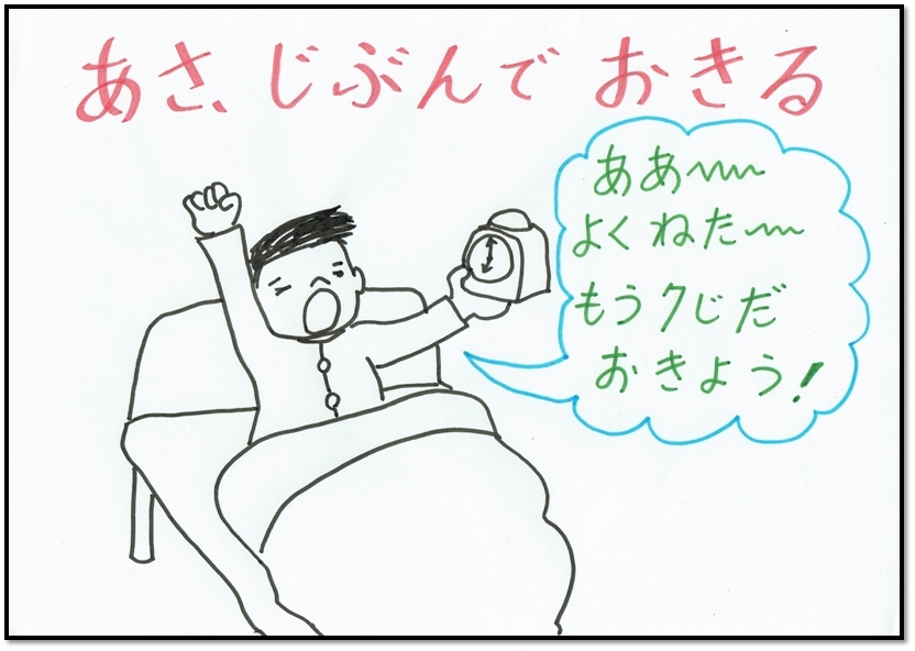 おこしてもらわなくても、じぶんでおきられたね。かっこいいんじゃない?ひとつまえにもどる トップページにもどる
