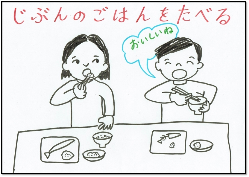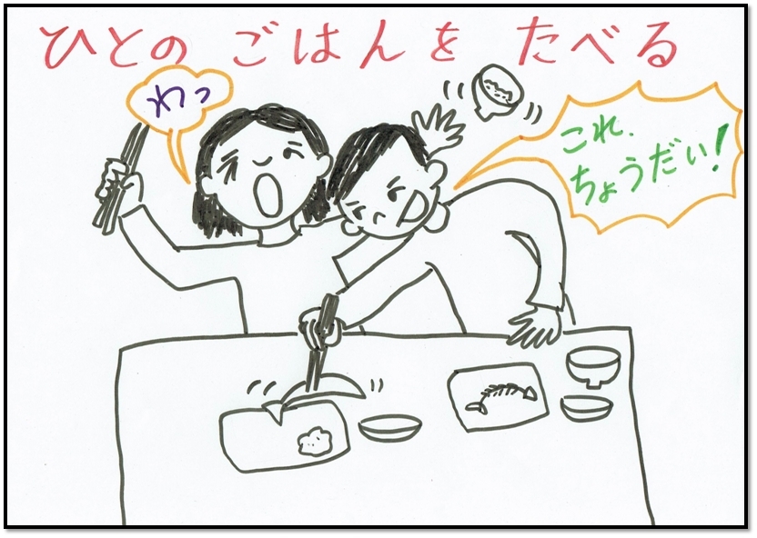 そうです。せいかいです!じぶんのごはんを、ゆっくりあじわってたべましょう!ひとつまえにもどる トップページにもどる