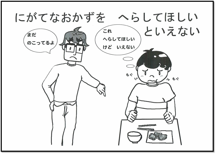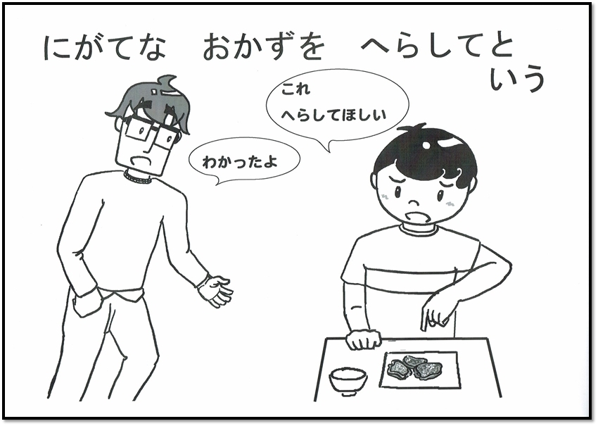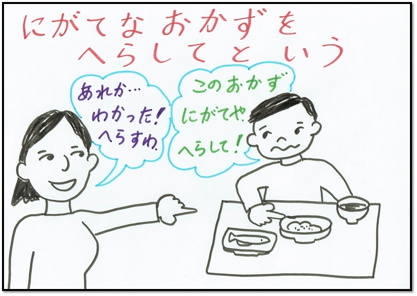 そうです!にがてなおかずは、へらしてほしいことをさきにちゃんといいましょう。ひとつまえにもどる トップページにもどる