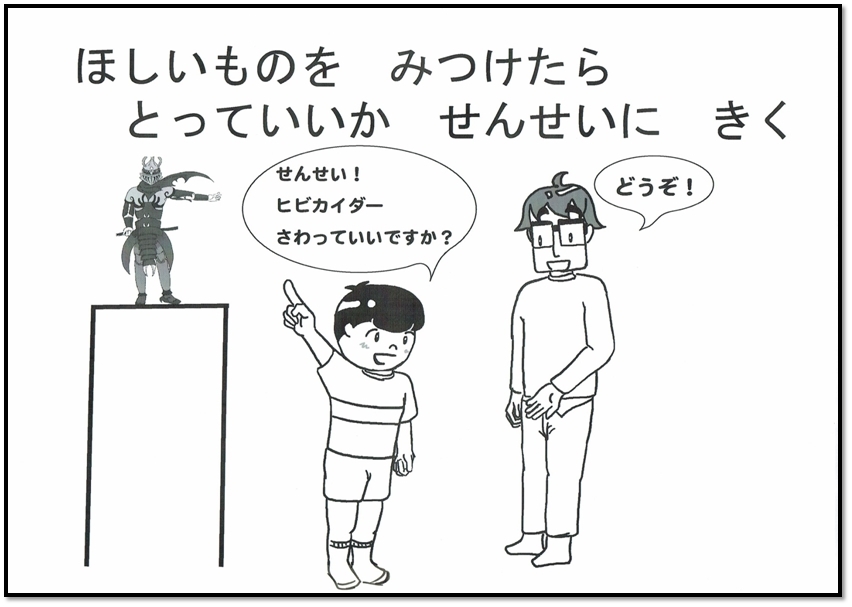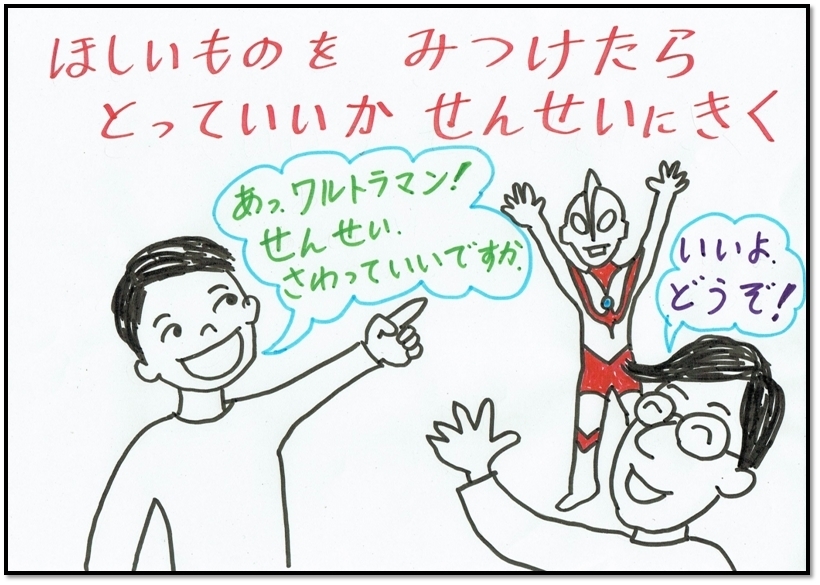 そうです!せいかいです!いきなりとりにいってはダメ!さわっていいか、ききましょう。ひとつまえにもどる トップページにもどる