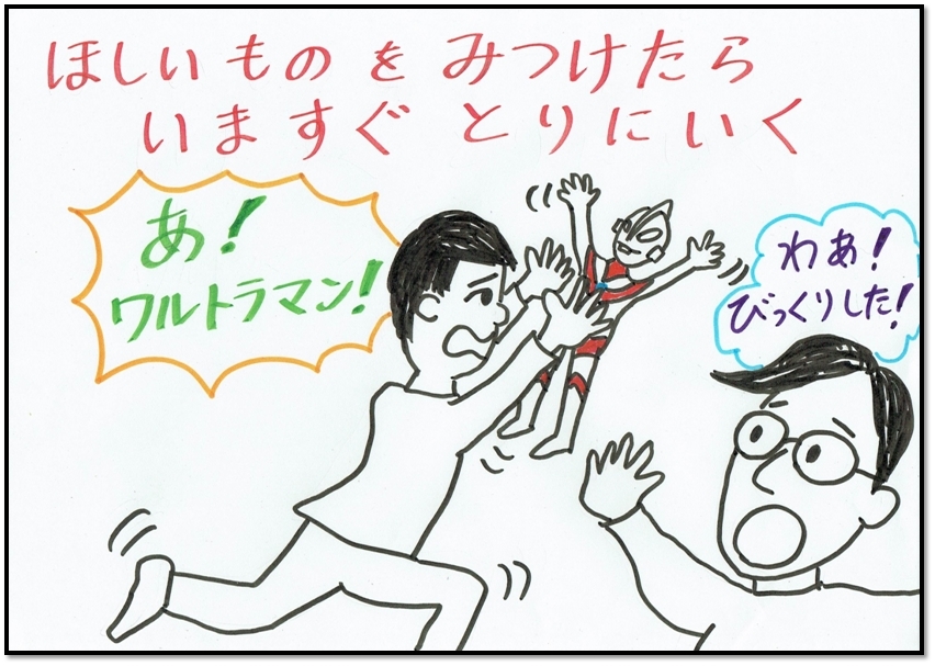 あれれ?せんせい、びっくりしてるよ。いきなりはしって、とりにいってはダメ。あわてないで、せんせいにきいてからだよ。ひとつまえにもどる トップページにもどる