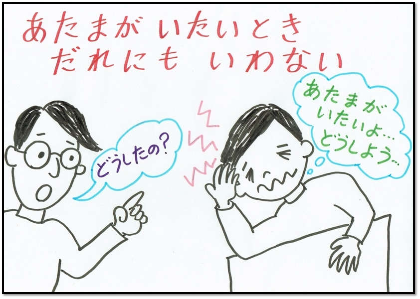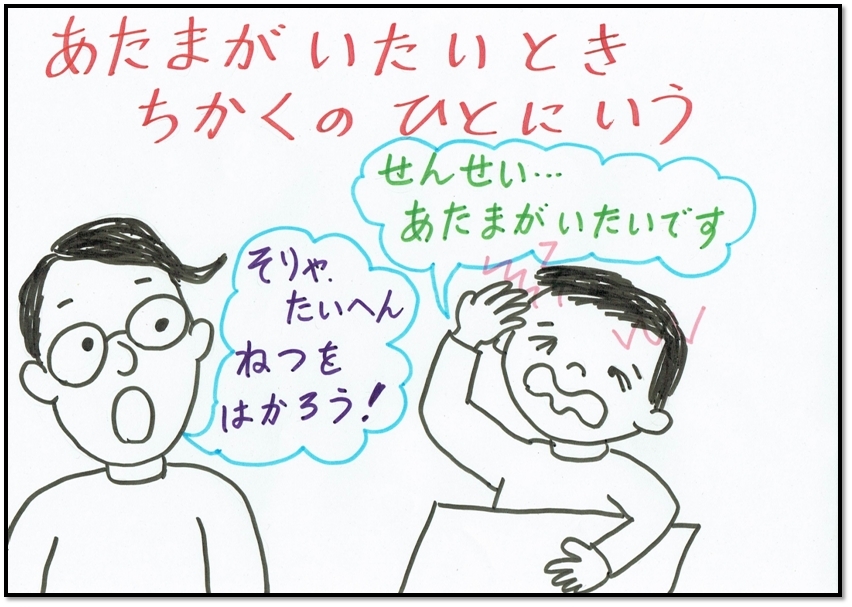 せいかいです!からだのちょうしがわるいときはちかくのひとに、ちゃんといいましょう!ひとつまえにもどる トップページにもどる