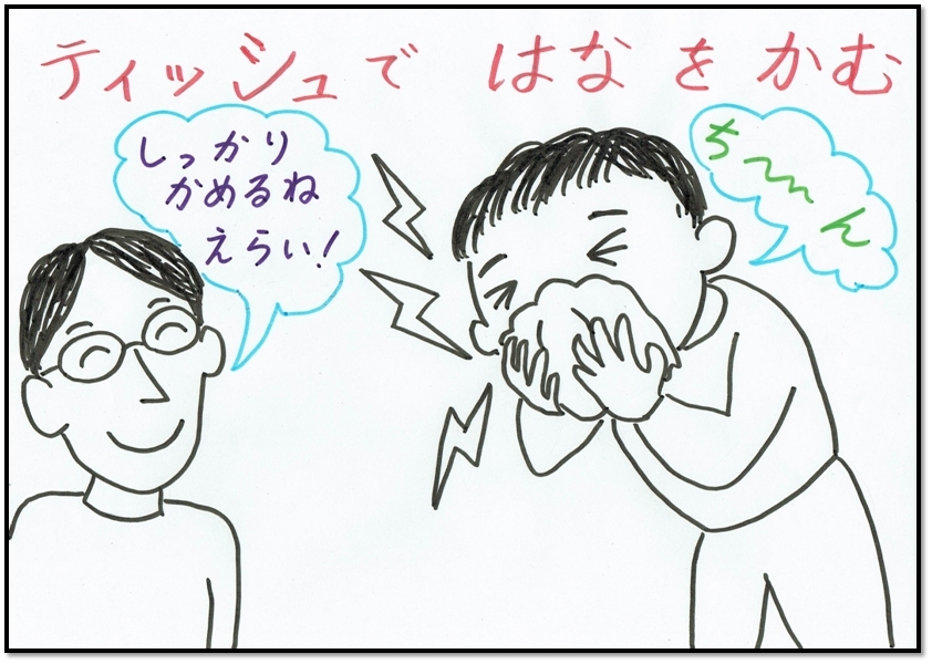 せいかいです!じぶんで、ティッシュをつかってはなをかもう!きちんとかめたら、かっこいいぞ!ひとつまえにもどる トップページにもどる