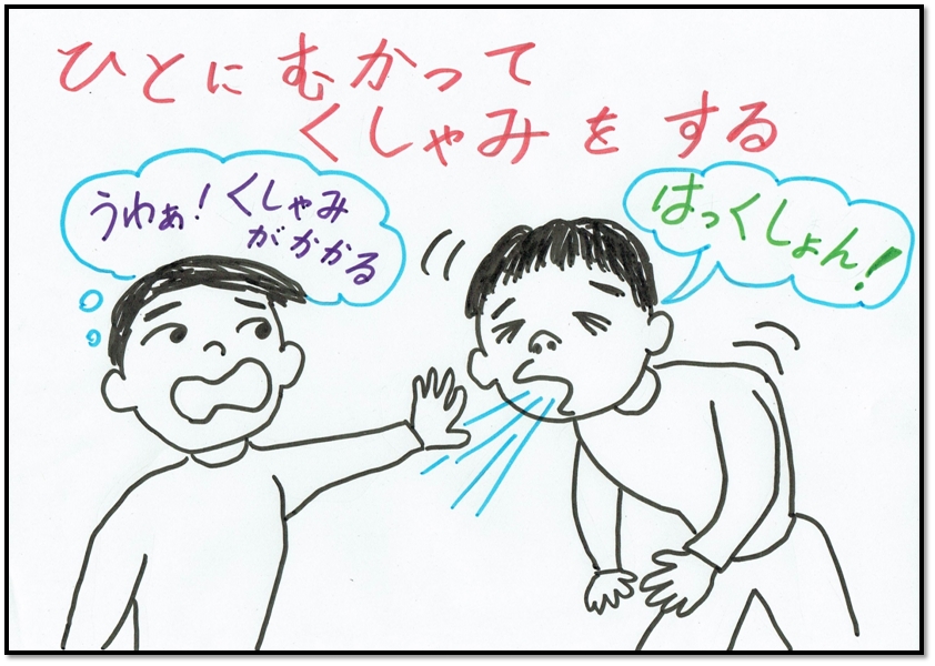 あれれ?ほんとうにそれでいいの?ほかのひとに、くしゃみがかかってしまうよ!ひとつまえにもどる トップページにもどる