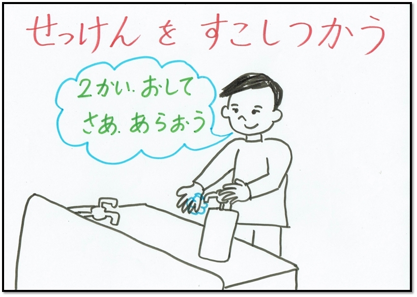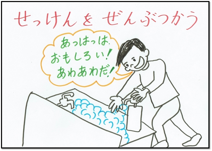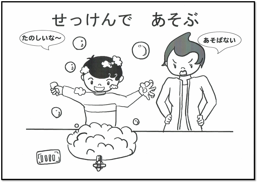 そうです!せいかいです!せっけんは、すこしでたりるよ!じょうずにつかおう!ひとつまえにもどる トップページにもどる