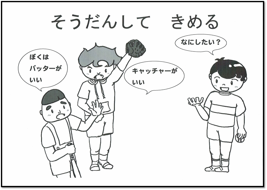 そう、そのとおり!みんなのいけんをきくと、たのしくあそべるよ!ひとつまえにもどる トップページにもどる