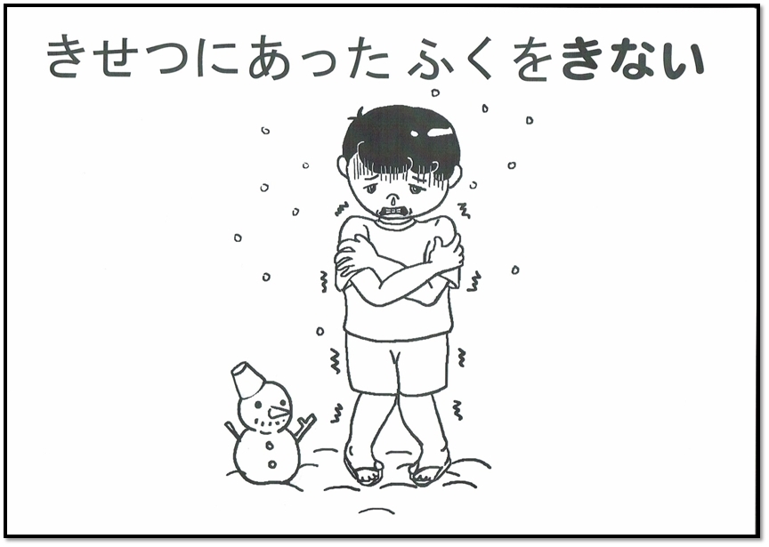 そのとおり!さむいときには、あったかいふくをきましょう。ひとつまえにもどる トップページにもどる