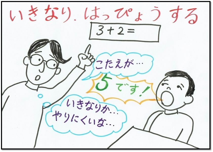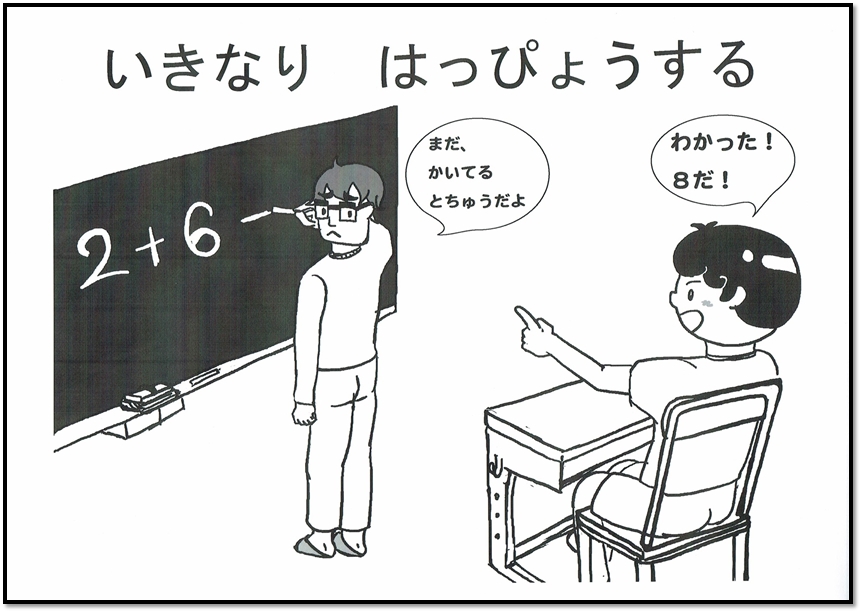 あれれ? ほんとうに、そっちがいいとおもう?いきなりバラバラにはっぴょうしたら、じゅぎょうがゴチャゴチャになるよ!ひとつまえにもどる トップページにもどる