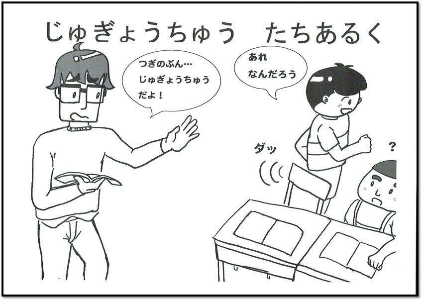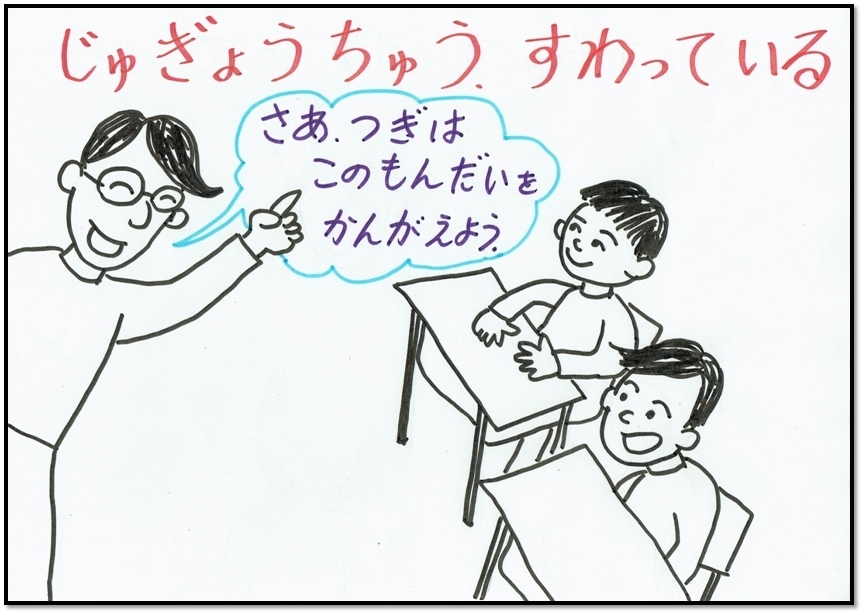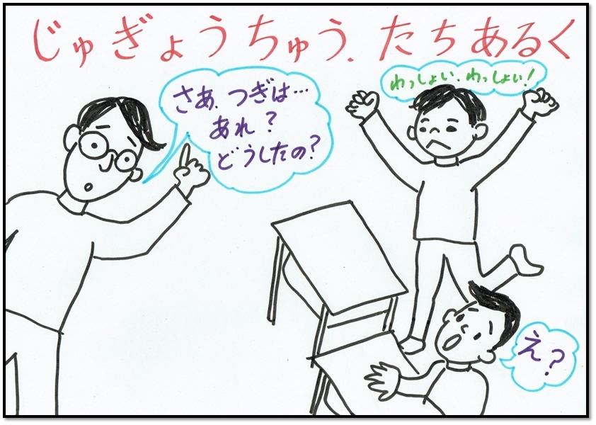 そうです!せいかいです。じゅぎょうちゅうは、かってにたってあるきません。ひとつまえにもどる トップページにもどる