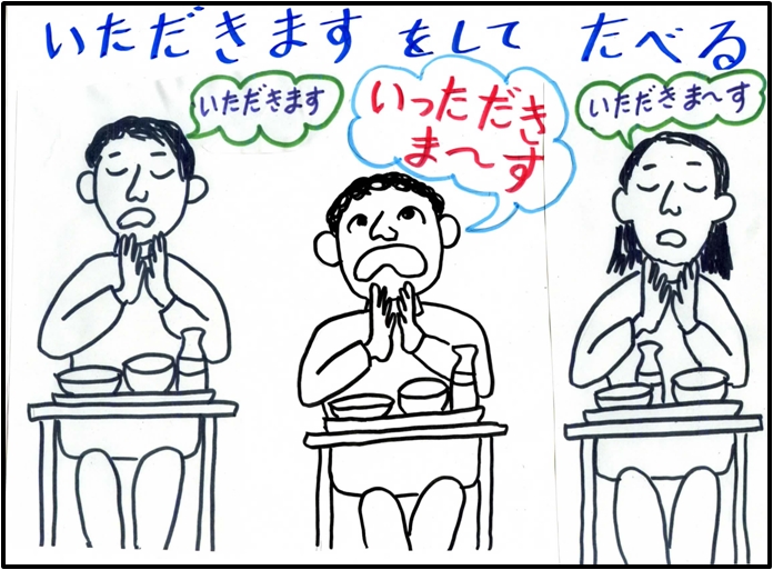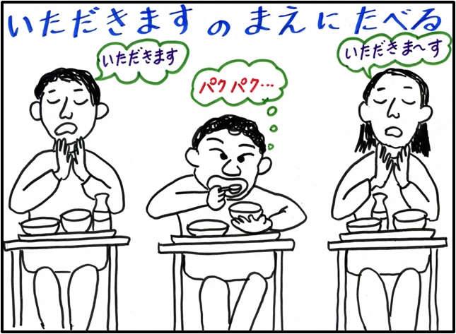 あれれ?ほんとにそれでいいの? ともだちは、いただきますをしてからたべるよ。 ひとつまえにもどる トップにもどる
