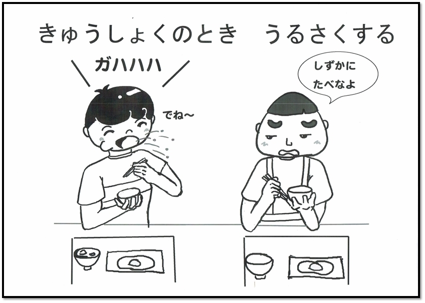 どっちが、おぎょうぎがいいかな?おぎょうぎがいいとおもうほうをタッチしてね。 ひとつまえにもどる トップにもどる