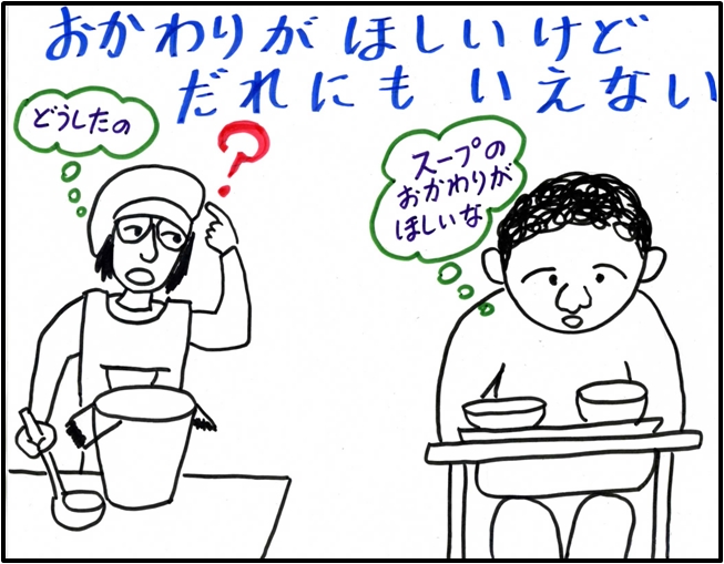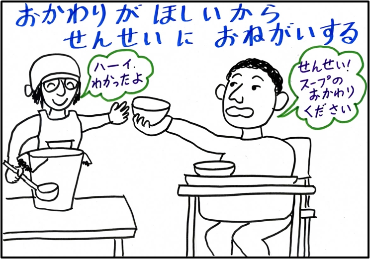 やった!せいかいです。 おかわりは、きちんとつたえよう! ひとつまえにもどる トップにもどる